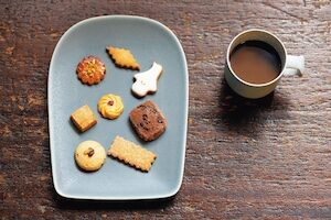 カステラのようなジェノワーズに生クリームとパテシエールを2層塗りして、酸味と甘味のバランスが良いイチゴをサンド。星のアイシングクッキーも。